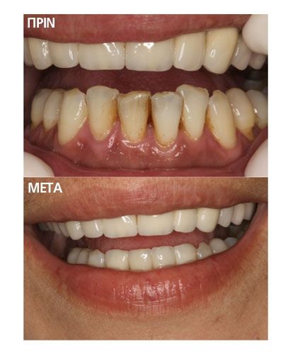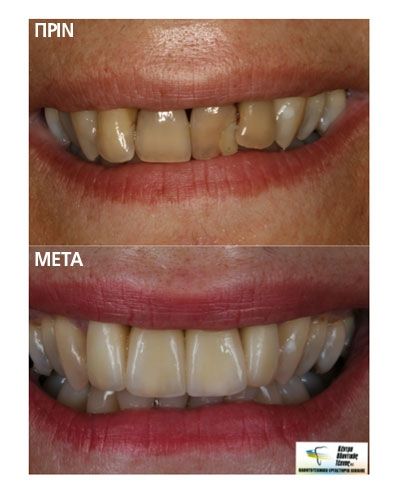 Ολοκεραμικές Στεφάνες - ΓέφυρεςΟι ολοκεραμικές στεφάνες αποτελούν μια μέθοδο για την αισθητική αποκατάσταση των πρόσθιων κυρίως δοντιών. Είναι κατασκευασμένες εξολοκλήρου από ειδική υπερενισχυμένη πορσελάνη, παρέχοντας άριστο αισθητικό αποτέλεσμα. Το γεγονός της έλλειψης μετάλλου βοηθά στη μέγιστη προσέγγιση του άριστου αποτελέσματος. Ολοκεραμικά συστήματα χρησιμοποιούνται επίσης και για την κατασκευή γεφυρών, κυρίως σε πρόσθιες περιοχές του οδοντικού φραγμού.